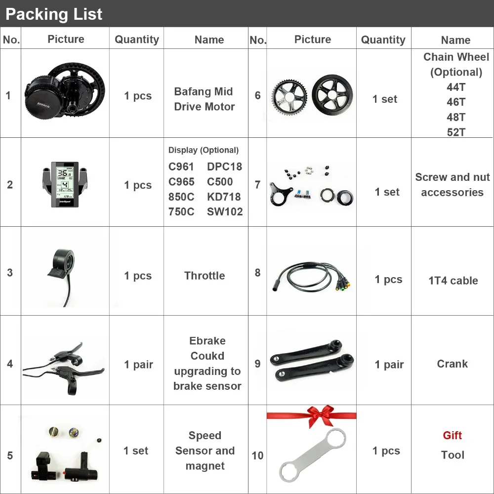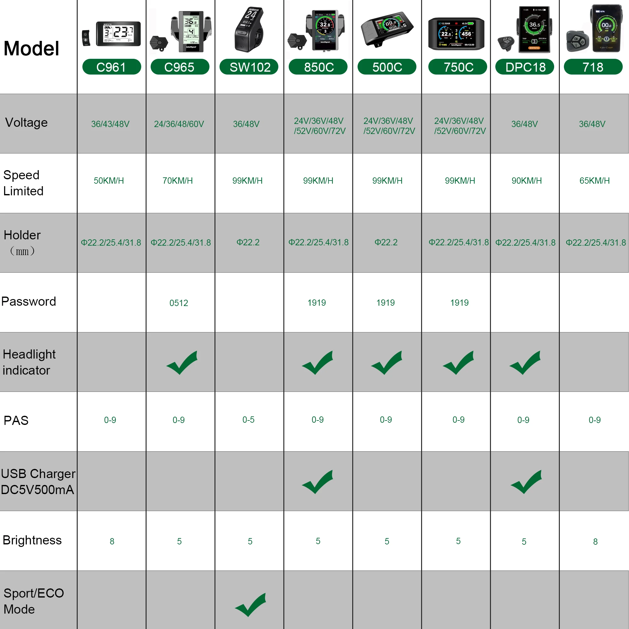 Display(Optional) : C961 C965 SW102 850C 750C DPC18 KD718 500C (colorful display)
