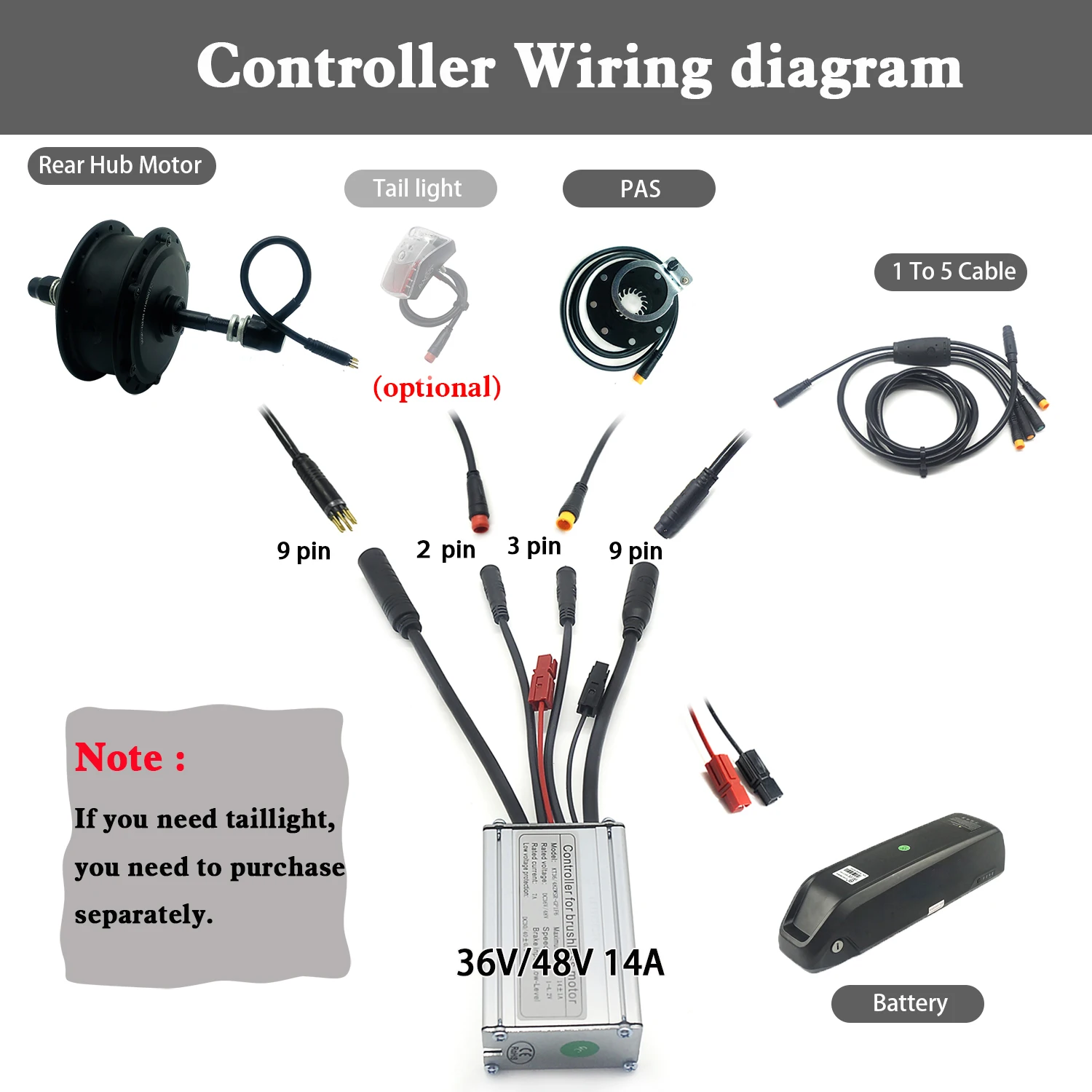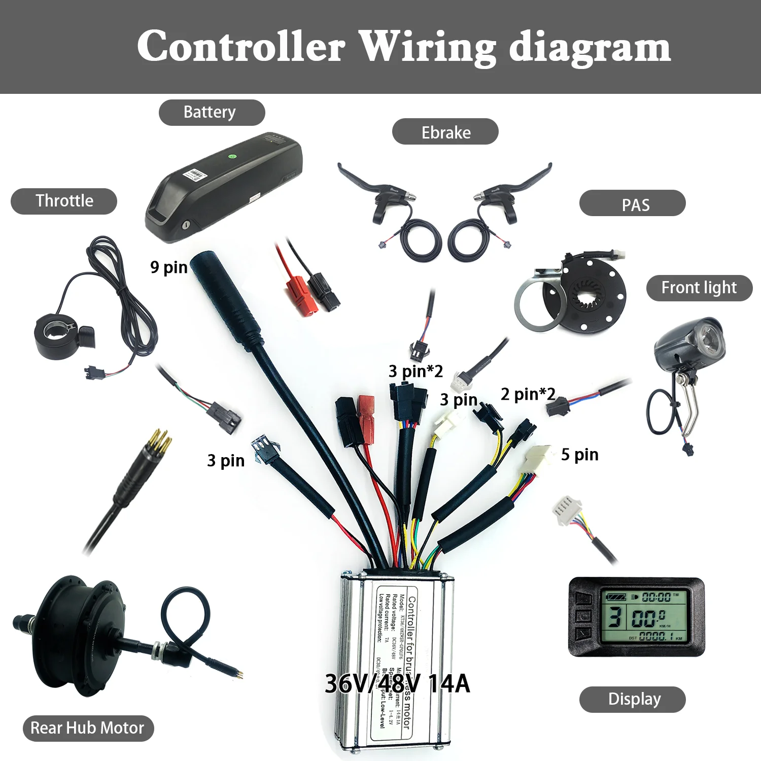 1 PCS * KT 36V 14A Controller(Waterproof with 1T5 cable)