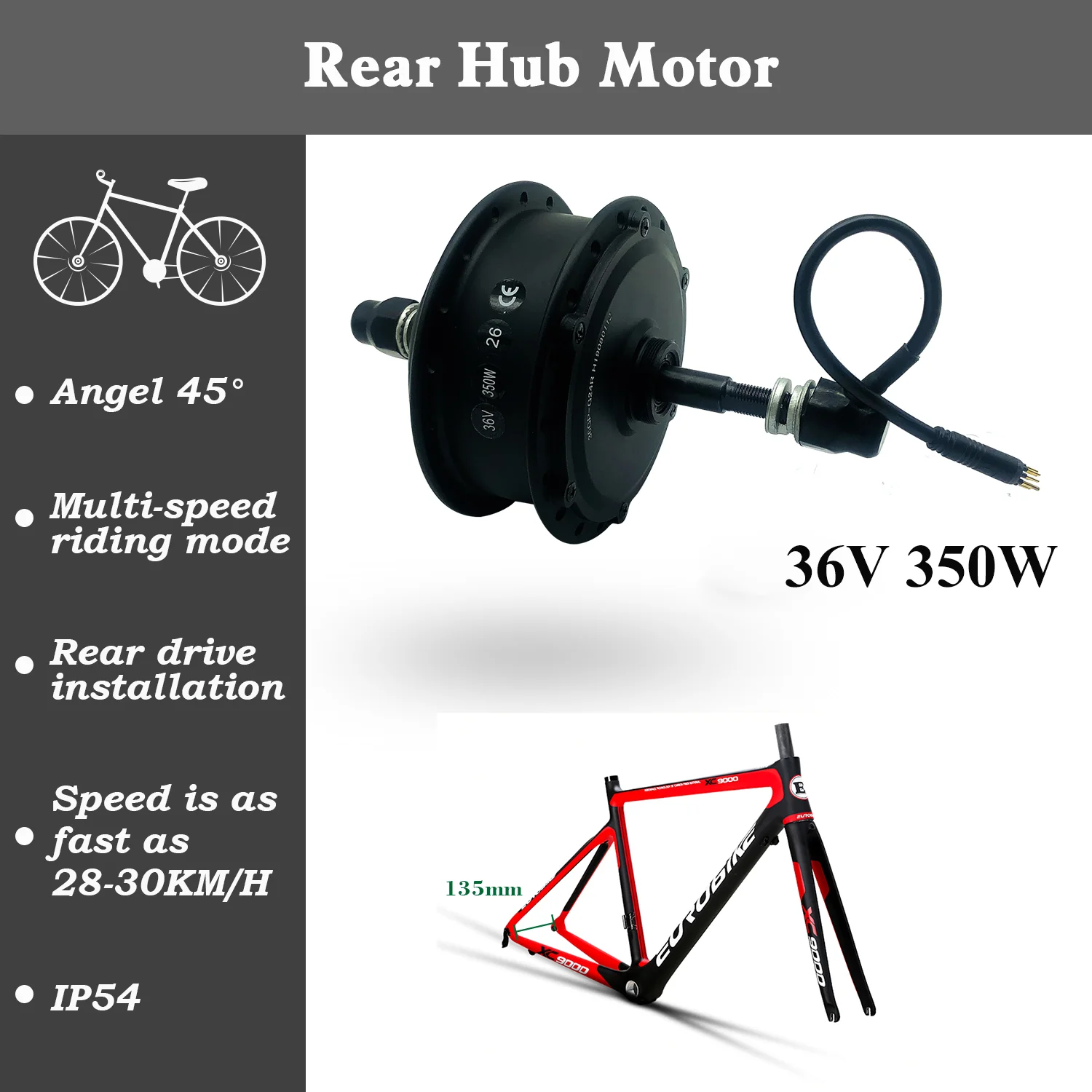 Type : 36V 350W Rear hub motor
