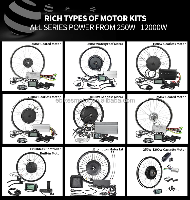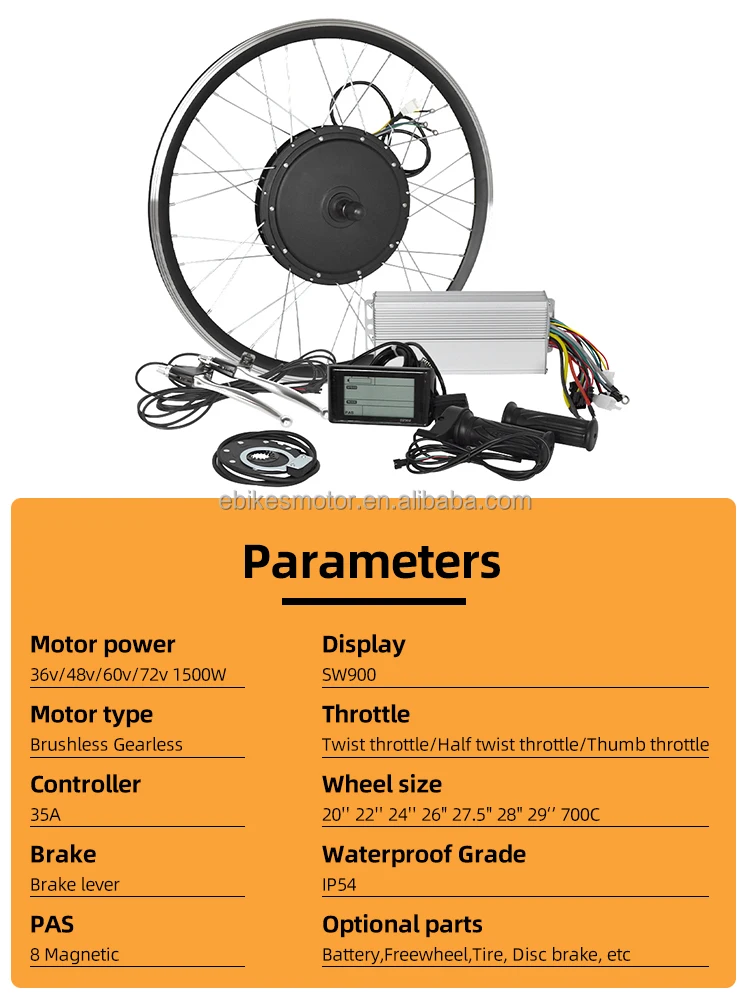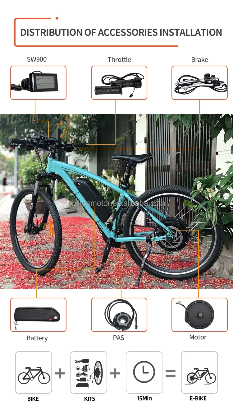 1) Brushless geared brushless geared hub motor 2) 20''-28'' double wall alloy rims with spokes 3) Thumb/twist throttle 4) Brake levers 5) 15A/17A controller with reverse 6) PAS 7) Cartons package with foam, windling pipe, nylon tie, user manual