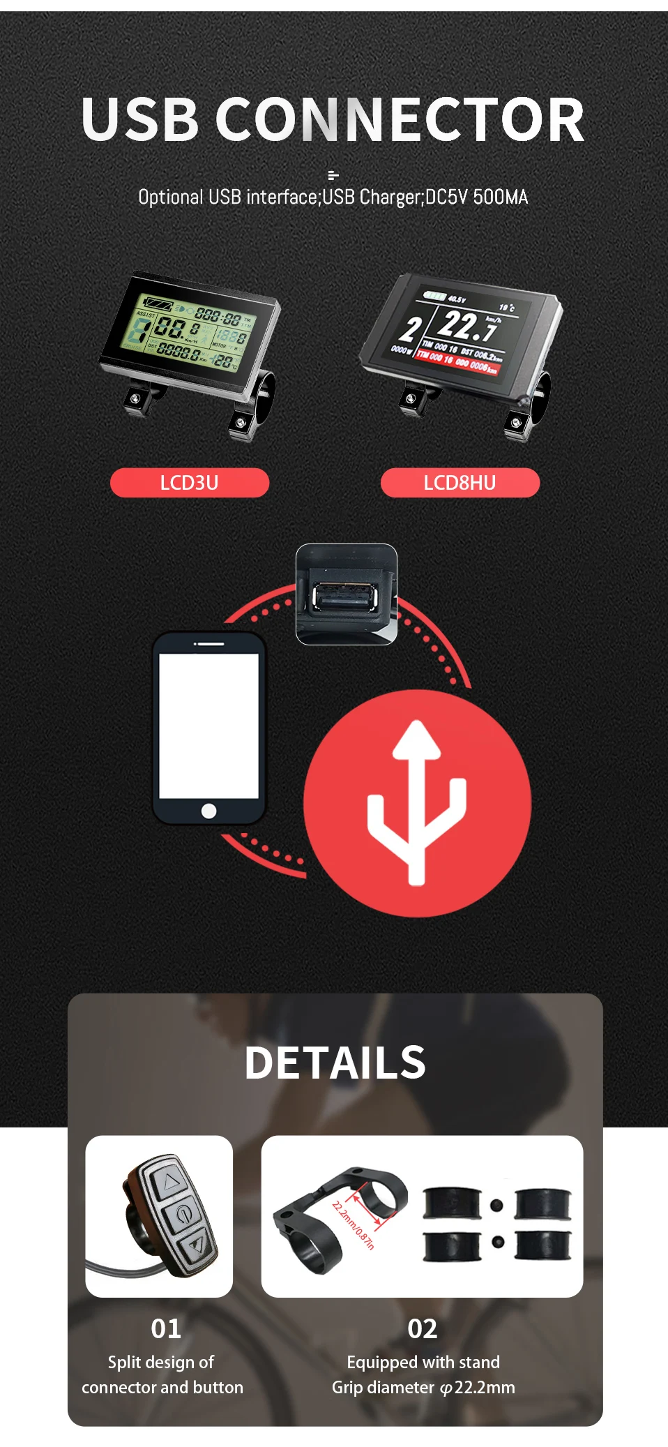 * 【Brake Display function】--Meter backlight, brake display function, motor running power and temperature display function.